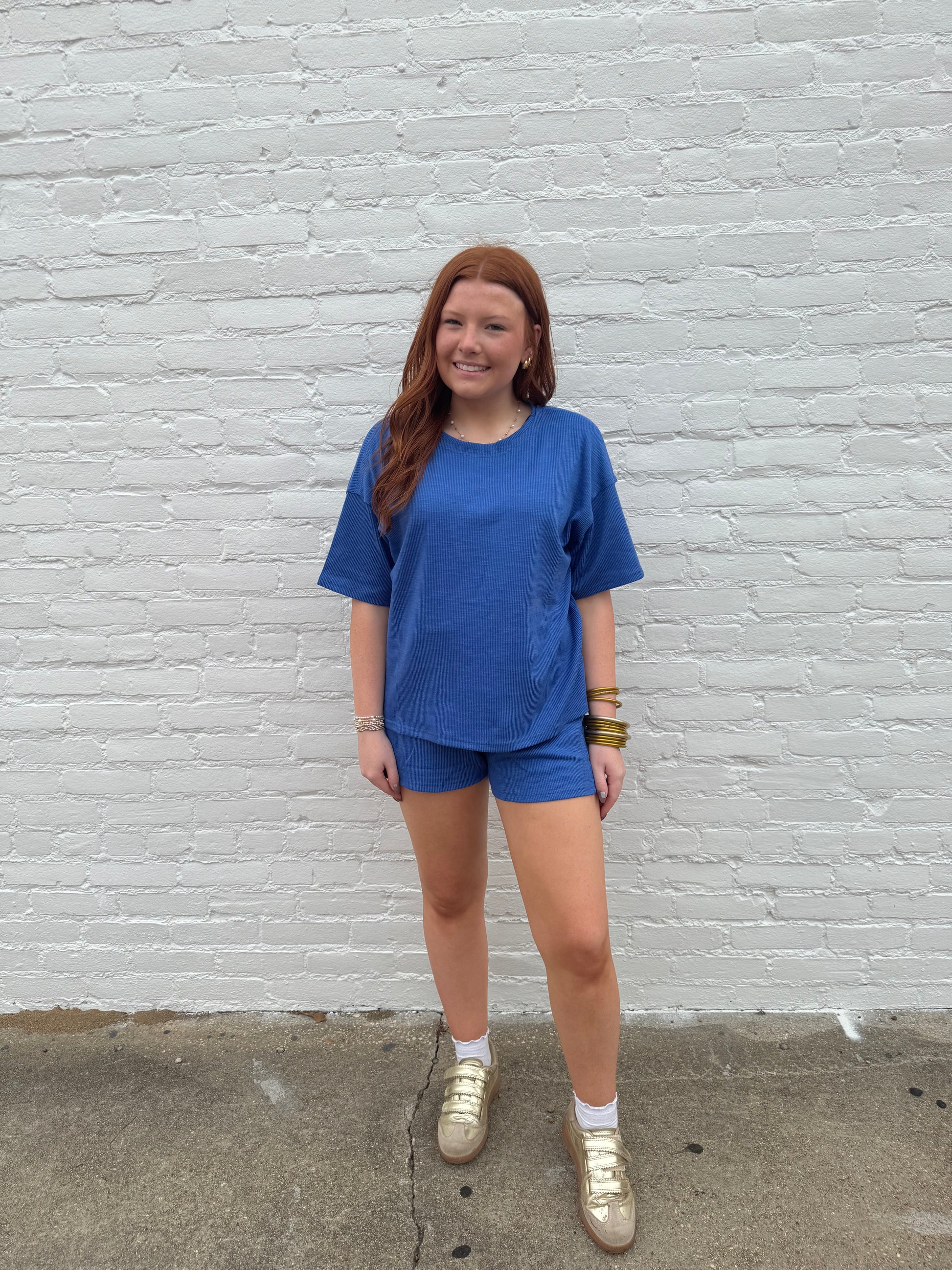 This playful set features a cozy Amaya textured knit design, combining a comfy top and matching shorts for a fun, stylish look.