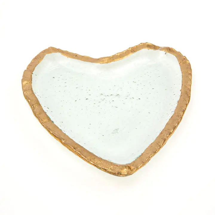 Catch all your precious little things in this Austria Glass Trinket Dish—a bubbly beauty with textured hand-blown glass and a gleaming gold border. Whether you're stashing jewelry, displaying artisan soaps, or keeping small treasures within arm's reach, this stunner doubles as décor. Its abstract, organic surface catches the light beautifully, making it an ideal gift for the bride-to-be or anyone who appreciates functional art. A playful accent that proves the best things really do come in small packages.