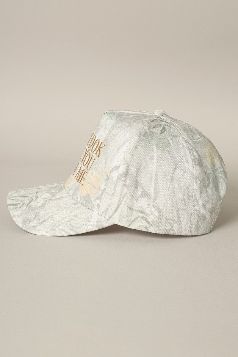 Show your vibe with the YOU LOOK LIKE YOU LOVE ME embroidered camo cap. Featuring bold lettering on a 5-panel Realtree camo design, this cotton baseball hat combines style and comfort. The adjustable snapback ensures a perfect fit for most heads, making it a fun addition to your outdoor look.