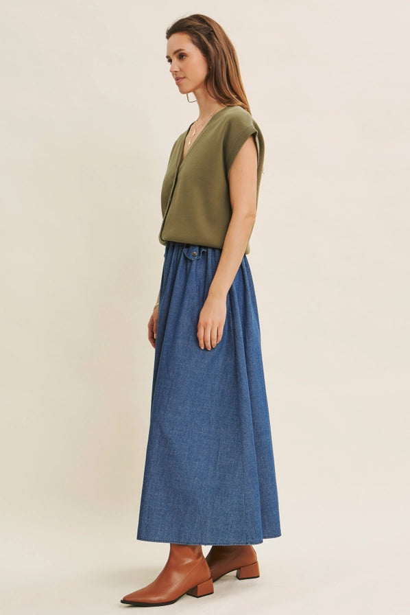 This cotton knit is your new closet chameleon—wear it as a vest, sleeveless cardigan, or layer it effortlessly under jackets. Soft yet structured, its breathable fabric drapes just right, while wide cap sleeves and real buttons add a touch of quiet luxury. Perfect with wide-leg pants or tucked into skirts, it’s the secret weapon for smooth seasonal transitions. Available in fresh fall shades, this versatile piece moves with your style—and quickly becomes your favorite repeat.