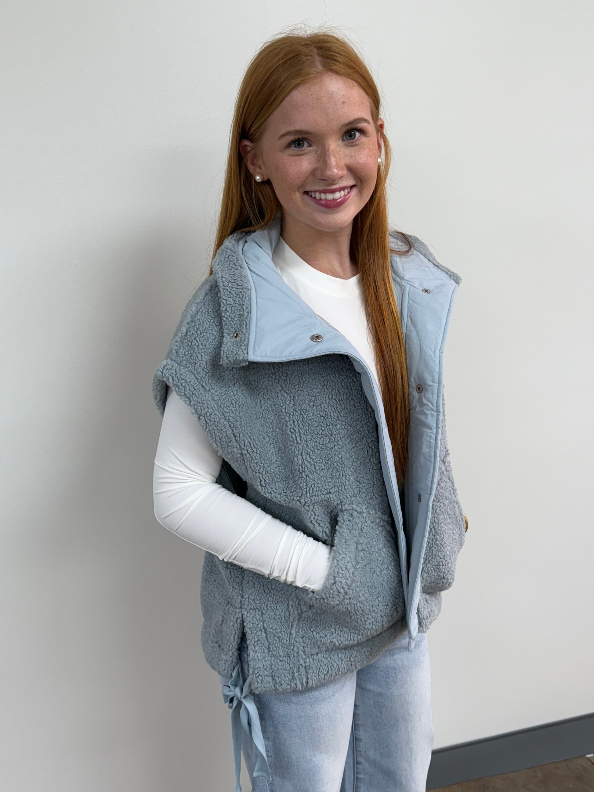 This cozy fleece zip vest features playful tie sides and adjustable hems for a perfectly customizable fit.