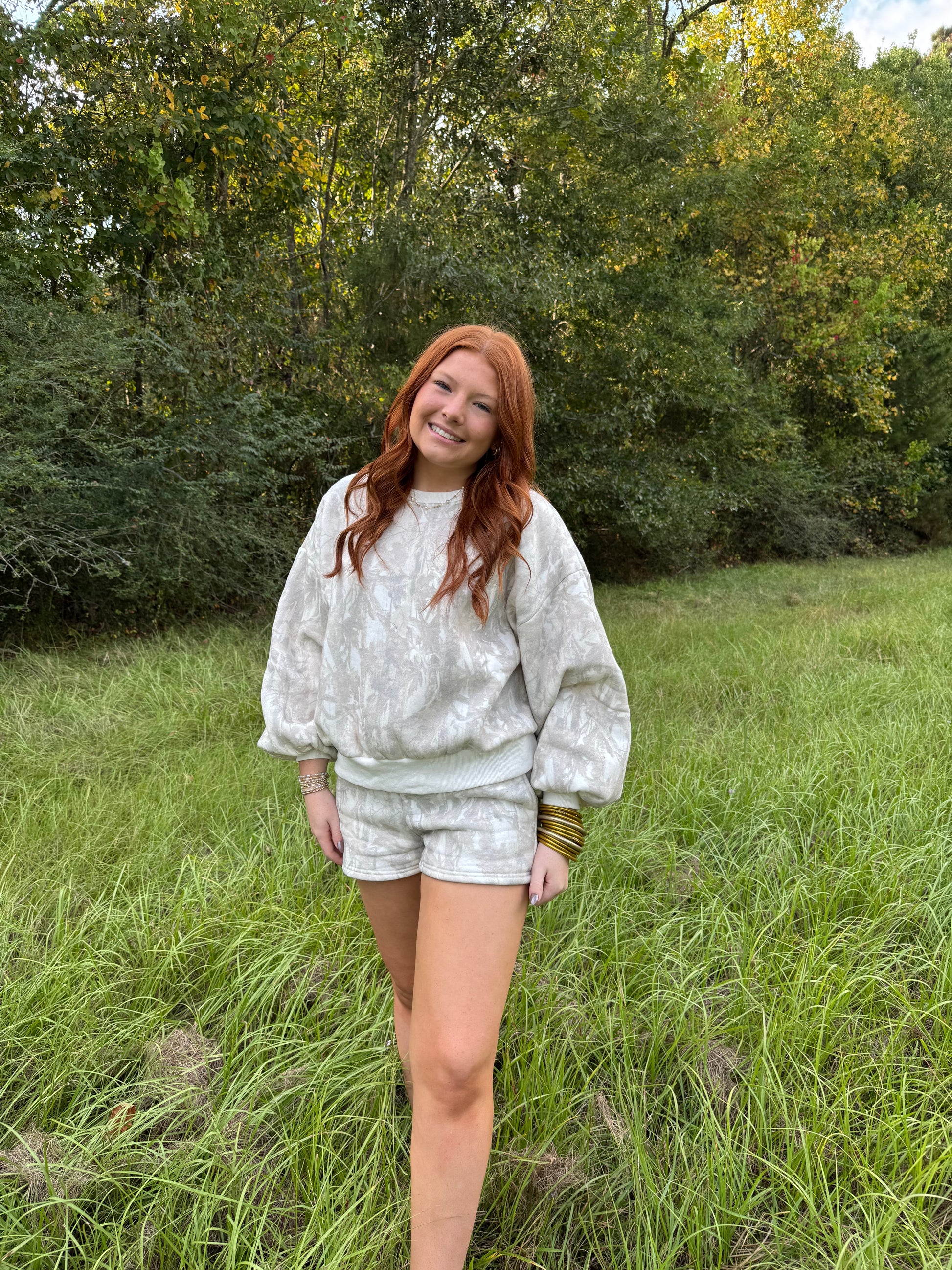 Get cozy and stylish in this tie dye hoodie and shorts combo. The oversized hoodie offers a chill, roomy fit with a drawstring hood and snug ribbed cuffs. Matching shorts complete the look with an elastic waistband and adjustable drawstring for ultimate comfort. Made from soft fabric in a mellow wash, this set is perfect for embracing those relaxed, easygoing days with a touch of fun.